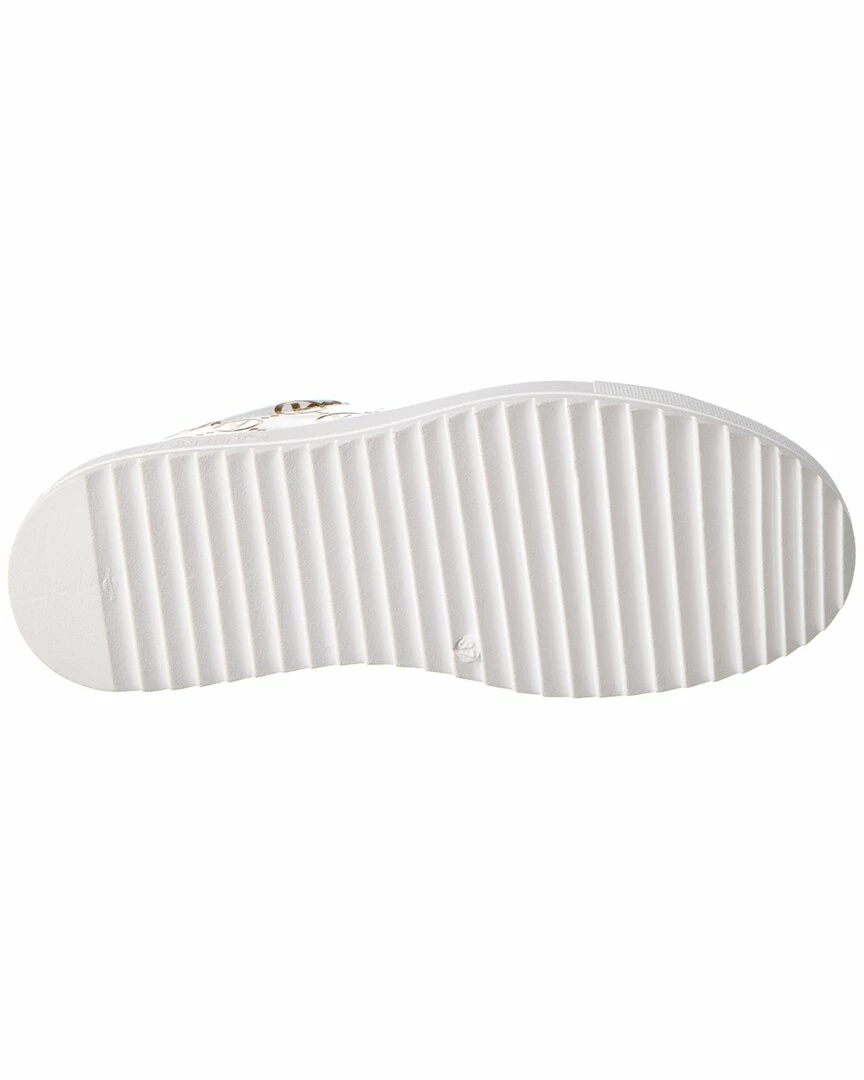 - Beatrice Leather Sneaker In White Leather And Gold-Tone Hardware With Monogram Print