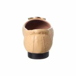 - Calliope Leather Flat In Beige Monogram Embossed Leather And Gold-Tone Hardware With Logo Accent