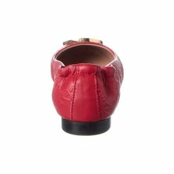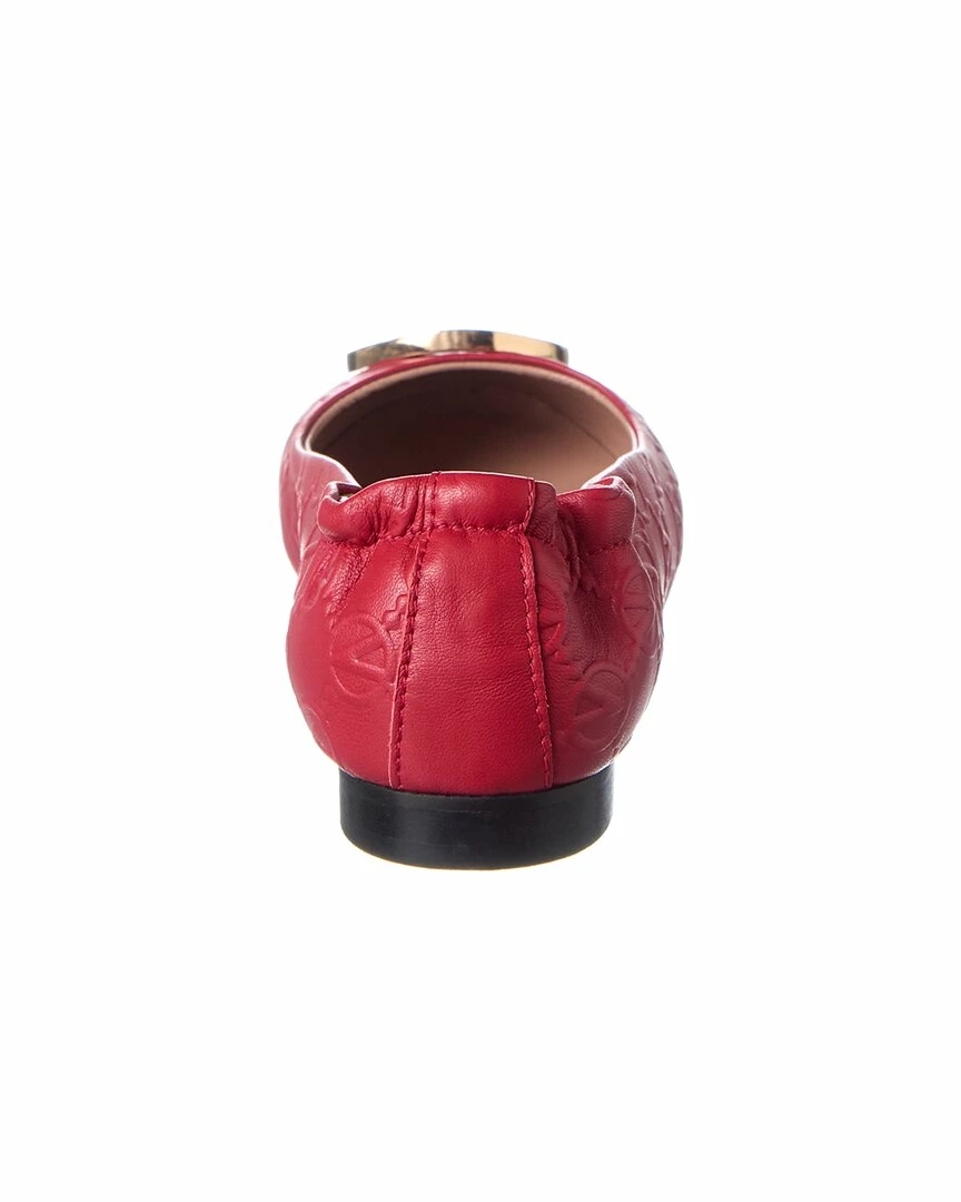 - Calliope Leather Flat In Dark Red Monogram Embossed Leather And Gold-Tone Hardware With Logo Accent