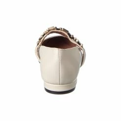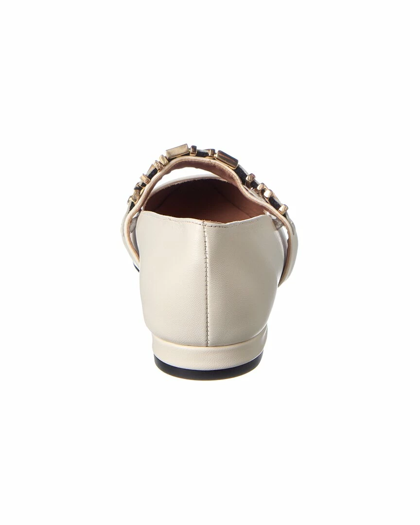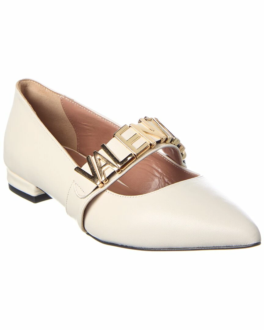 - Claudia Leather Flat In White Leather And Gold-Tone Hardware With Elasticized Strap With Logo Lettering And Pointy-Toe