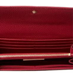 - Collins Flap Leather Wallet In Red Leather And Gold-Tone Hardware With Logo Accent