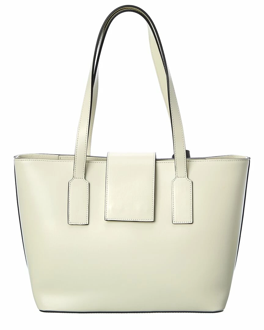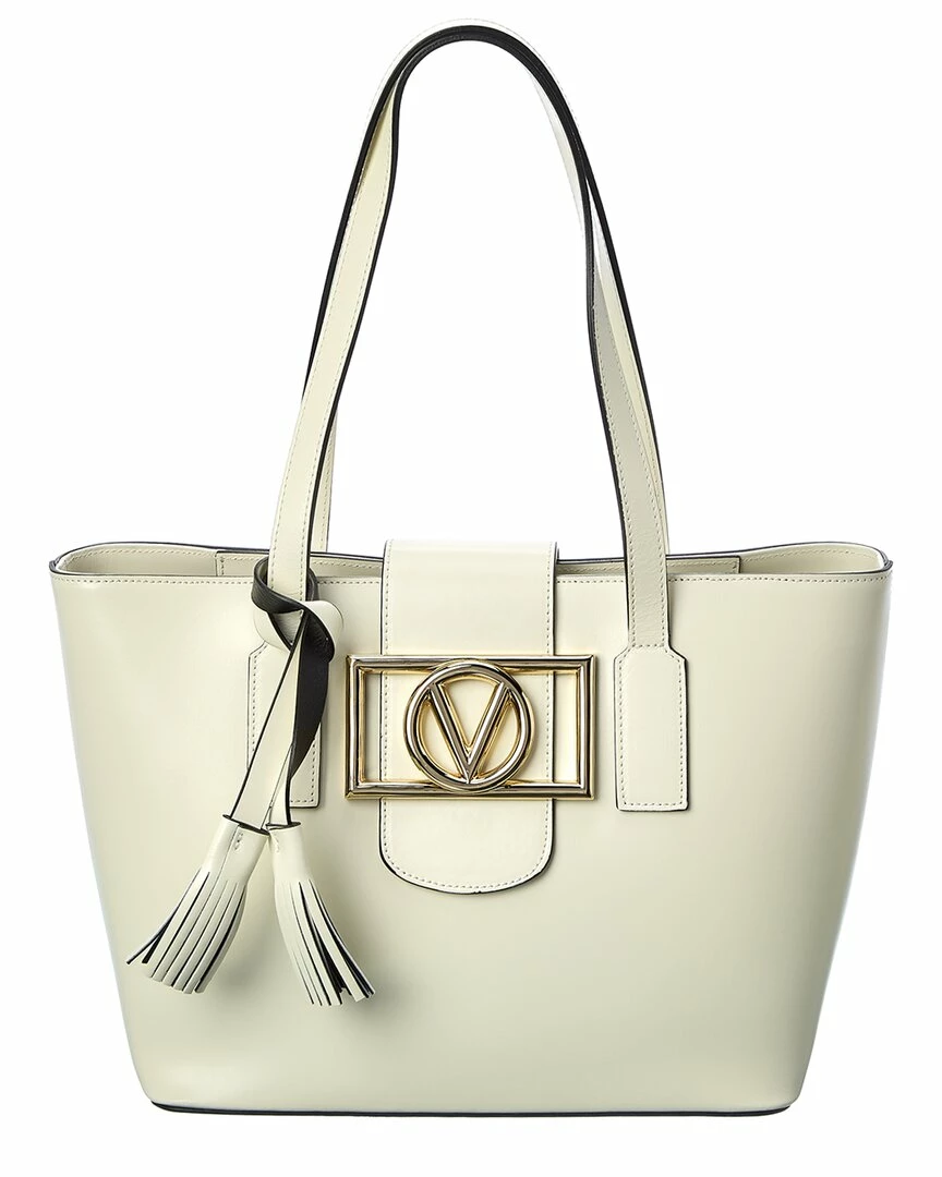 - Delphine Super V Leather Tote In Pannacotta Leather And Gold-Tone Hardware With Logo Accent And Tassel Charms