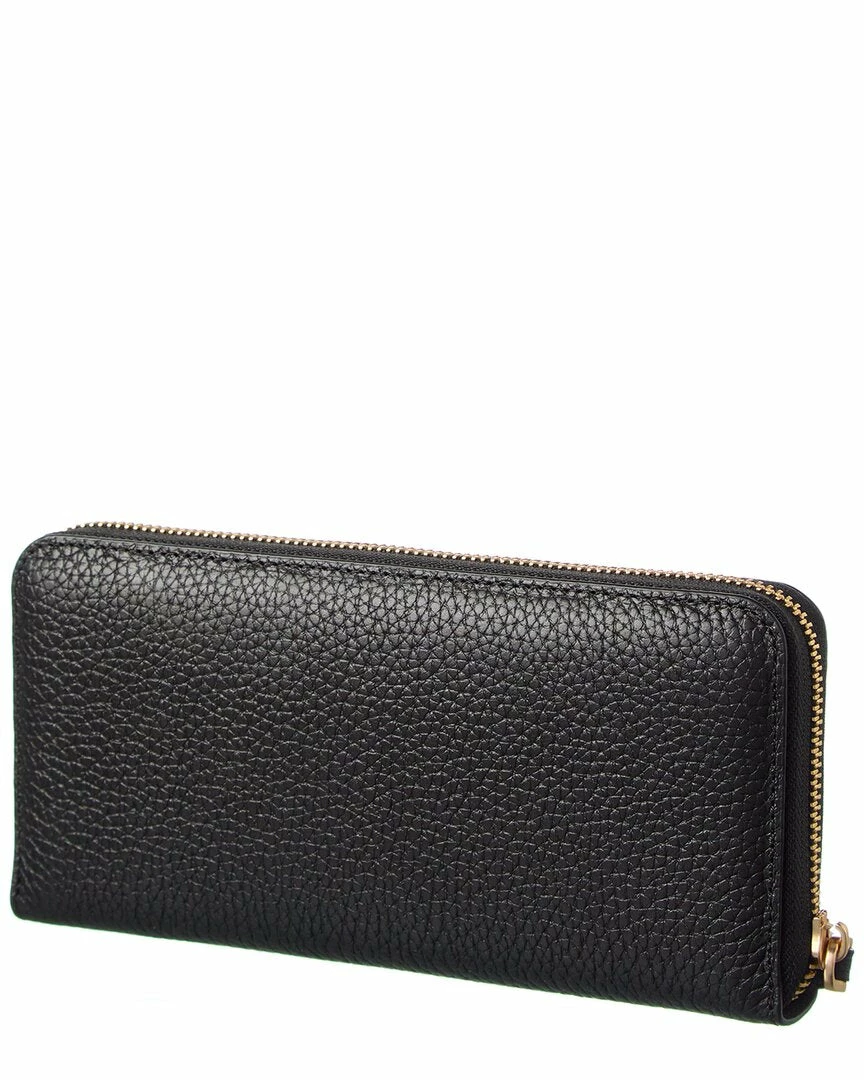 - Farley Continental Top Zip Leather Wallet In Black Leather And Gold-Tone Hardware With Logo Accent