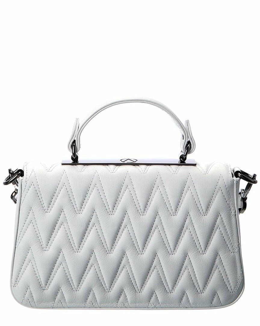 - Florence D Plate Leather Shoulder Bag In White Leather And Gunmetal-Tone Hardware With Logo Accent And Quilted Stitching