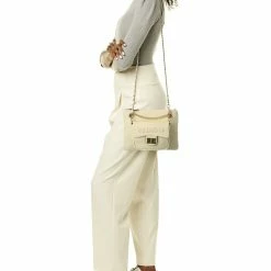 - Jodie Embossed Leather Shoulder Bag In Pannacotta Leather And Gold-Tone Hardware With Removable Turnlock Pochette