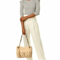 - Luisa Diamond Leather Shoulder Bag In Creamy Mousse Leather And Gold-Tone Hardware