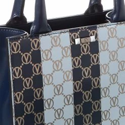- Marie Magnus Leather Tote In Blue And White Leather And Gunmetal-Tone Hardware With Monogram Print