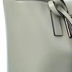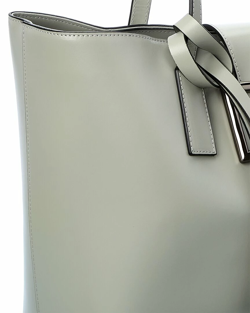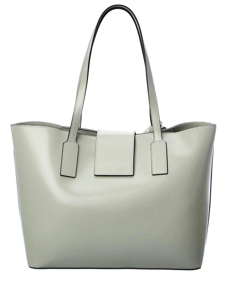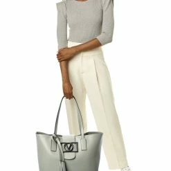 - Marion Super V Leather Tote In Dove Grey Leather And Gunmetal-Tone Hardware With Logo Accent And Tassel Charm