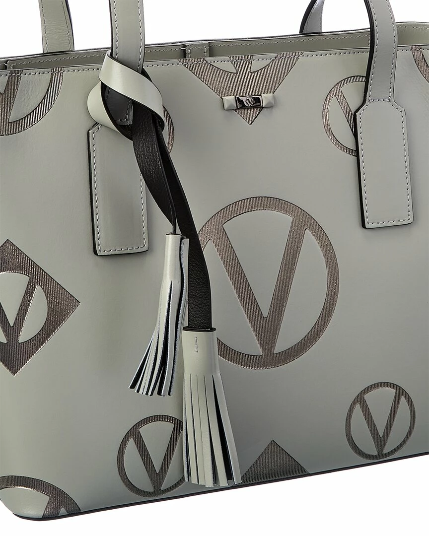 - Prince Magnus Leather Tote In Dove Grey Leather And Gunmetal-Tone Hardware With Removable Tassel And Metallic Logo-Embossed Front
