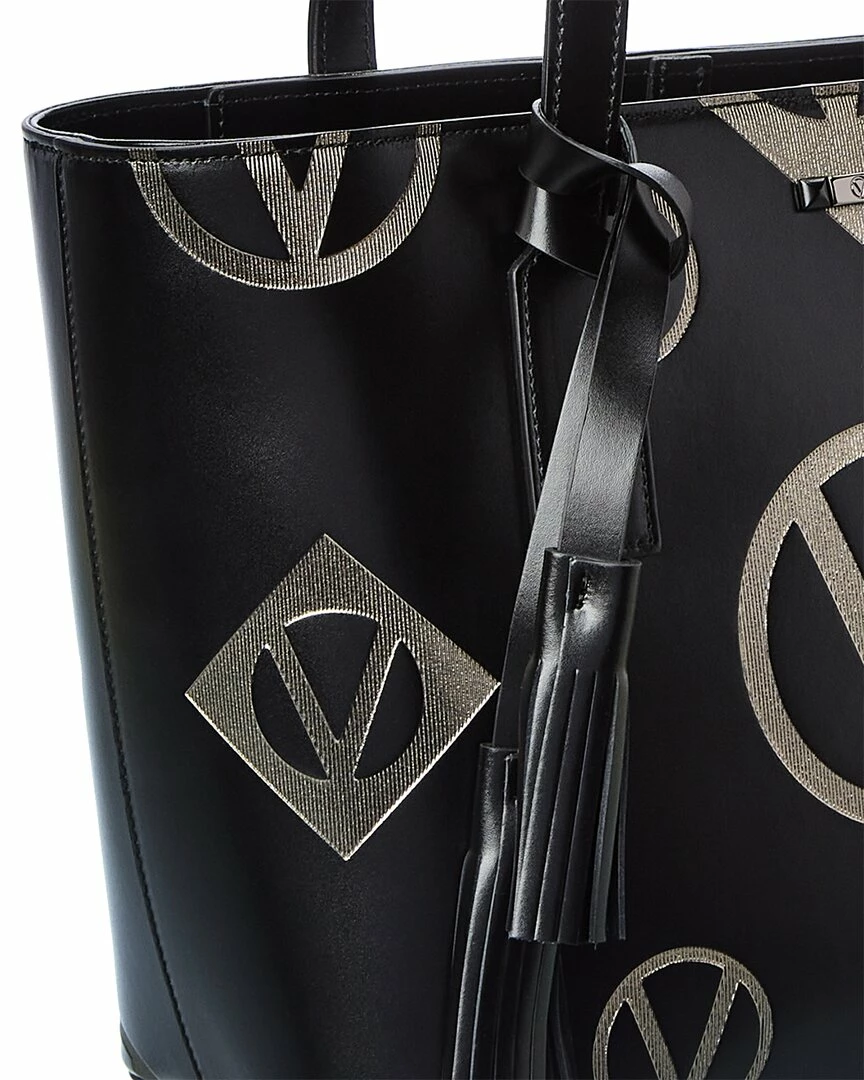 - Prince Magnus Leather Tote In Black Leather And Gunmetal-Tone Hardware With Removable Tassel And Metallic Logo-Embossed Front