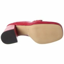 - Rosalinda Leather Platform Pump In Dark Red Leather And Gold-Tone Hardware With Logo Lettering Strap