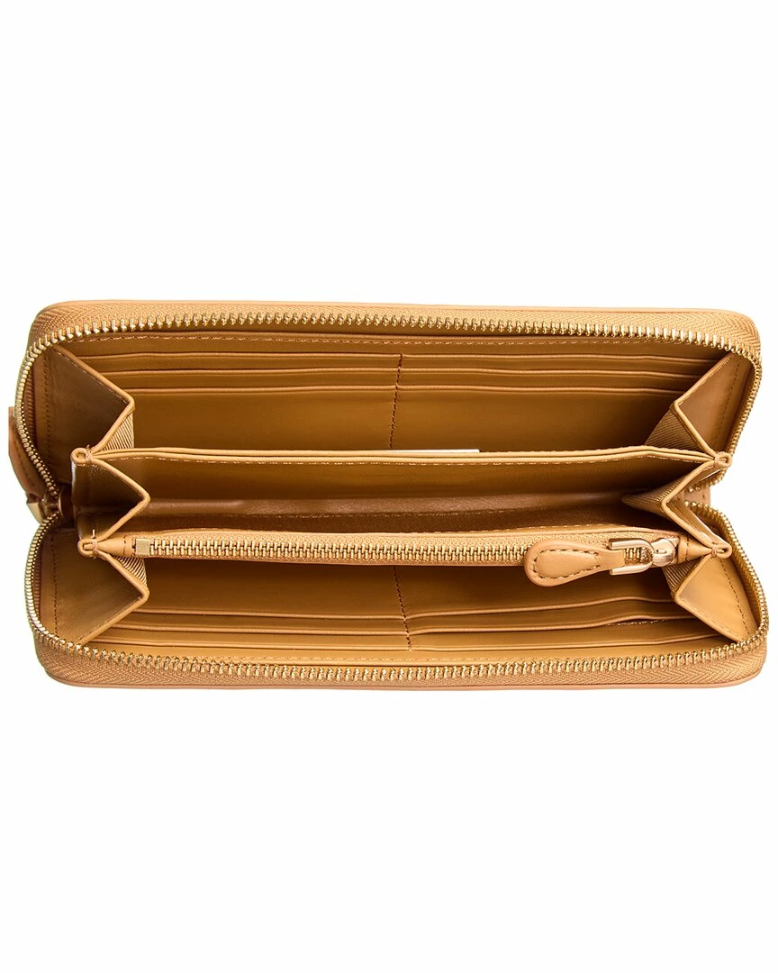 - Sofia Leather Zip Around Wallet In Whiskey Leather And Gold-Tone Hardware With Stitched Logo