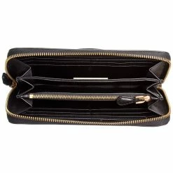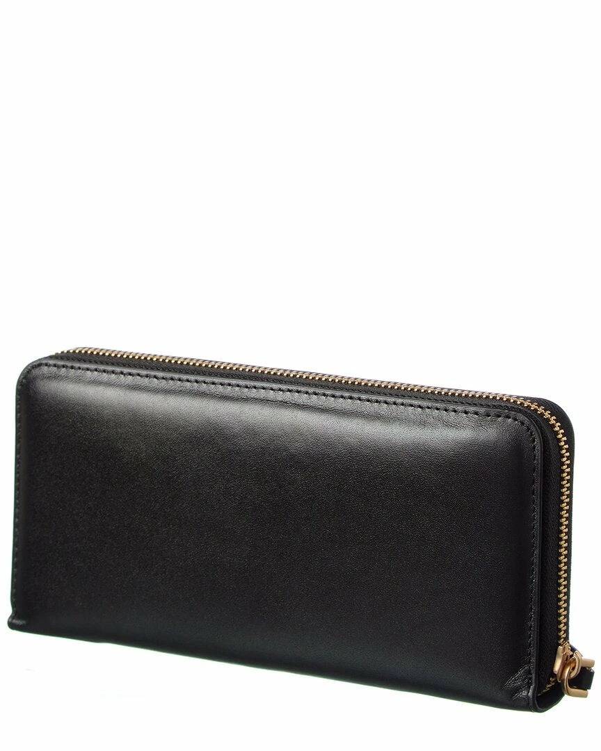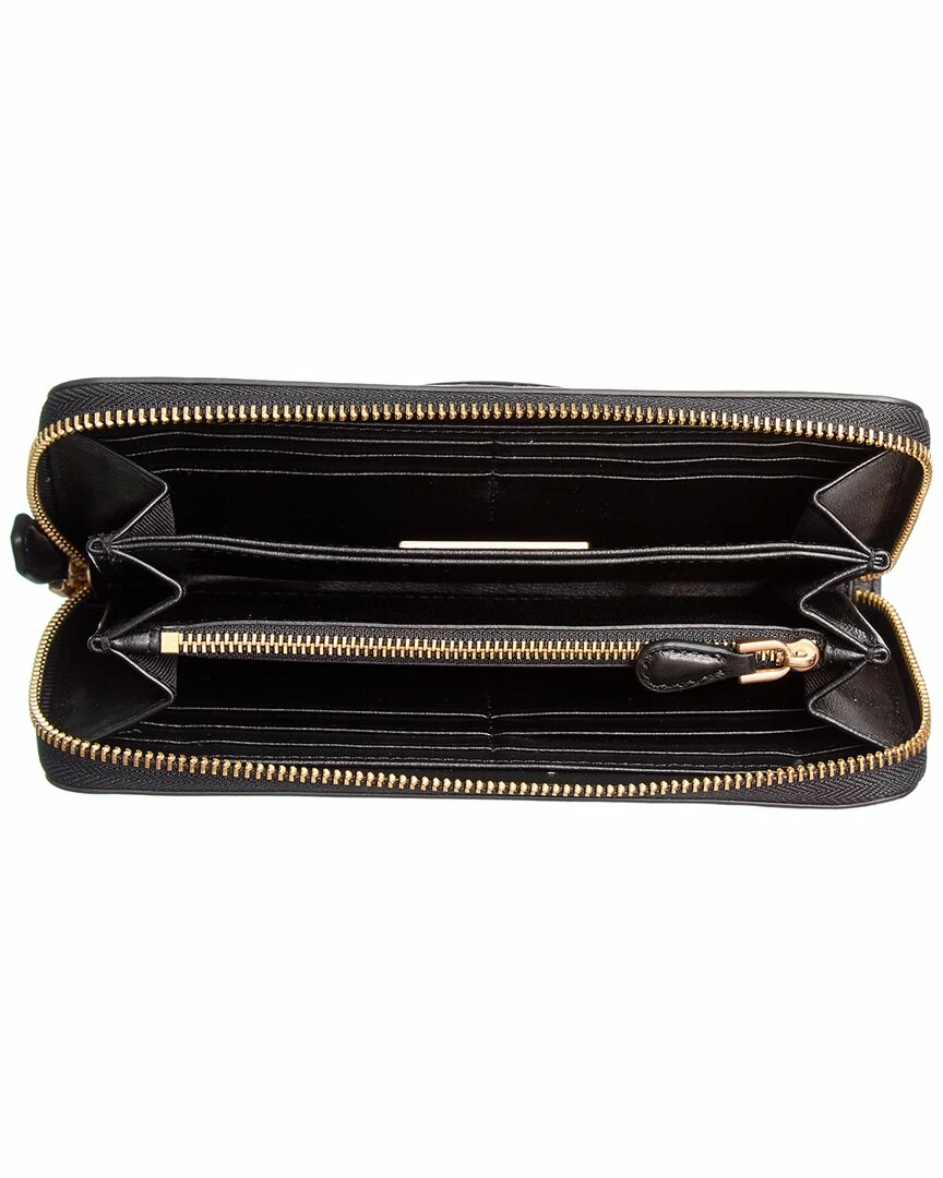 - Sofia Leather Zip Around Wallet In Black Leather And Gold-Tone Hardware With Stitched Logo