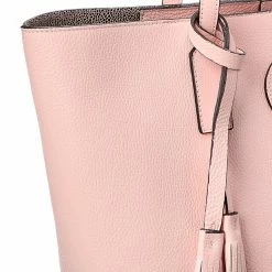 - Soho Medallion Leather Tote In Cadillac Rose Leather And Gold-Tone Hardware With Removable Tassel And Logo-Embossed Front