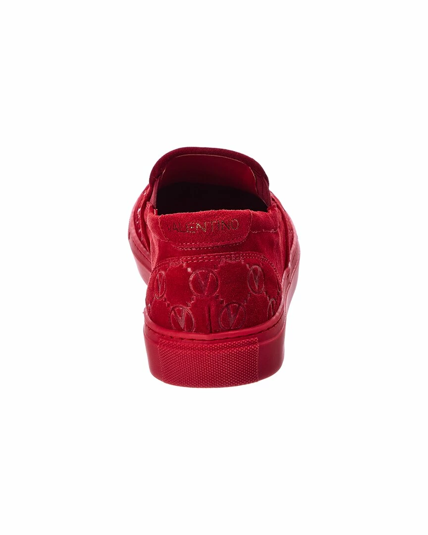 - Timoteo 2 Suede Slip-On Sneaker In Red And Black Monogram Suede With Logo Accents